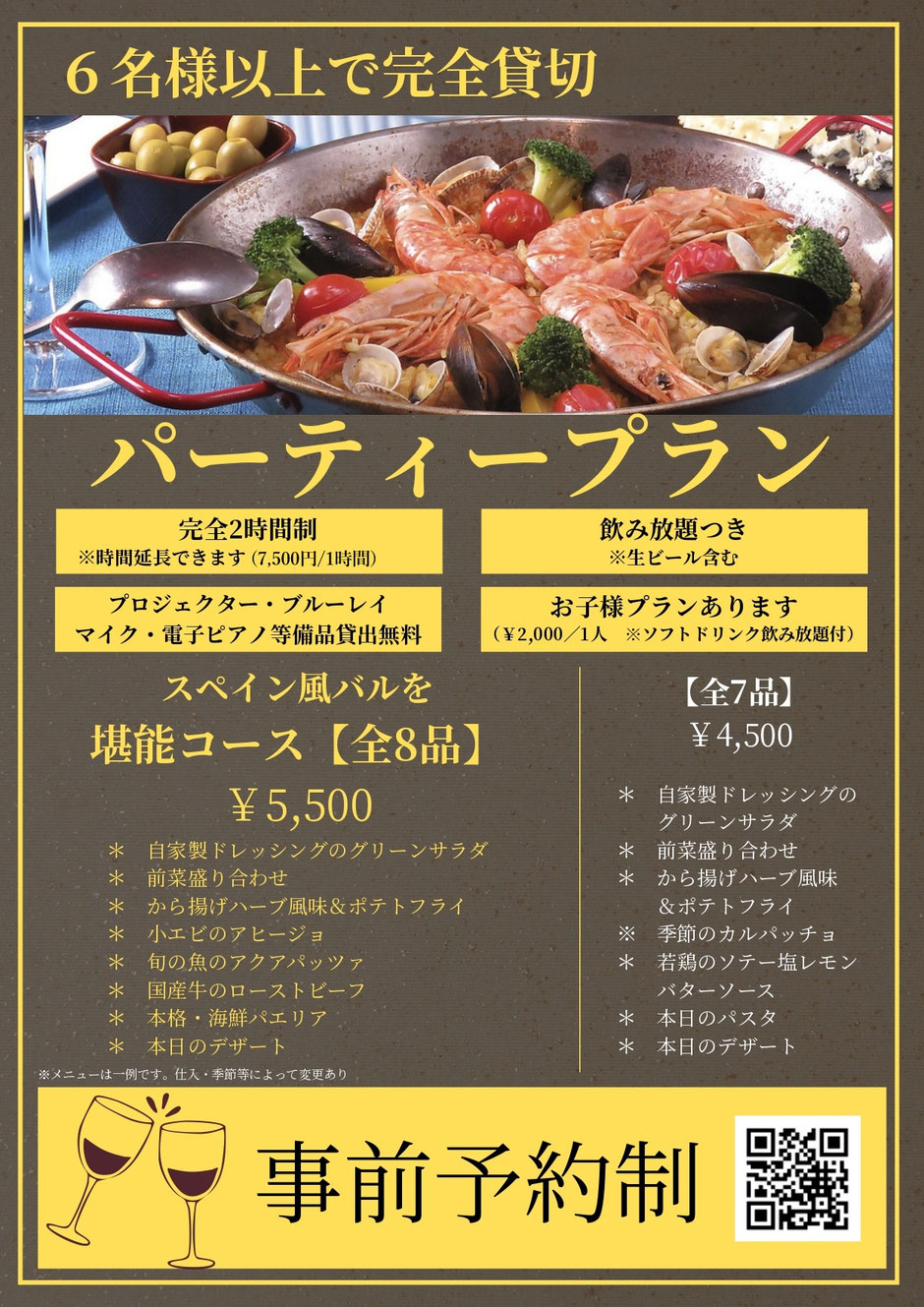 ※お子様(3歳~小学生)は¥2,000/1人でソフトドリンク飲み放題つき